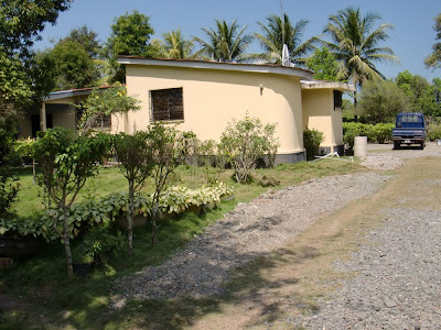 I am visual person. So, I have taken the following photos for those of you who are as well. We are settling into our new place slowly, having spent the last three days working non-stop.  I’ll show you some photos of that later… but for now, just enjoy these. We are so ready to be living in the country where there are trees, plants, even a few flowers and peace and quiet. This house, in this location, away from the city and amidst greenery is refreshing to my soul. We moved from dust, dirt,no plants, no flowers, a few large but mostly dead tress, neighbors who burned trash that wafted into our screen house every morning and evening, the unending noises of living in a city, and living literally inside a school with 600 kids. I can’t even explain to you how happy and thankful we are for the Lord’s provision in this new home. Here are the photos of the house, I was standing at the front gate when I took them…it’s a panoramic view starting from the right.